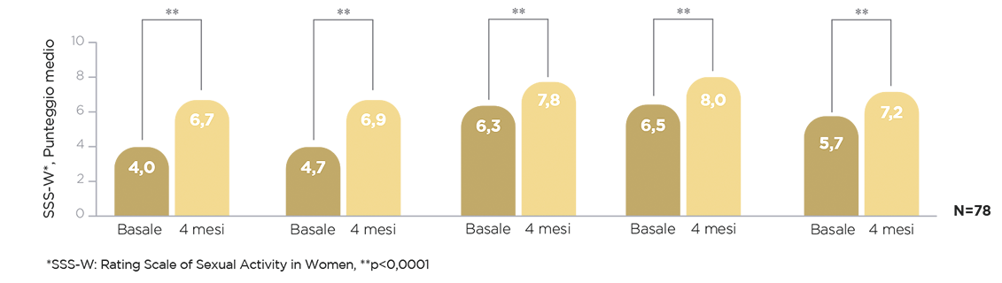 Secondo i risultati dello studio, il 92% delle donne ha aumentato il punteggio EVAS-M dopo 4 mesi, migliorando la qualità dell’attività sessuale.