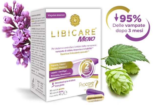 Libicare® Meno è un integratore alimentare dalla formulazione innovativa, composto esclusivamente da ingredienti di origine naturale. Studi clinici e dati raccolti da fonti autorevoli indicano che fino al 95% delle donne ha riscontrato una riduzione significativa nella frequenza e nell’intensità delle vampate di calore già dopo tre mesi di utilizzo continuativo. Grazie alla sua efficacia dimostrata, Libicare® Meno rappresenta una soluzione naturale e sicura per affrontare i sintomi più comuni e fastidiosi della menopausa, migliorando il benessere generale e la qualità della vita.