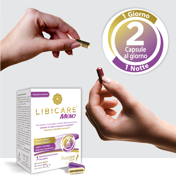 Libicare® Meno: due capsule per un’azione globale su tutti i sintomi della menopausa.